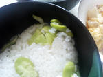 そら豆ごはん自分も炊きました。この方法だと冷凍しても色が鮮やか。